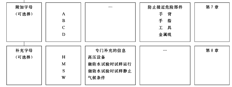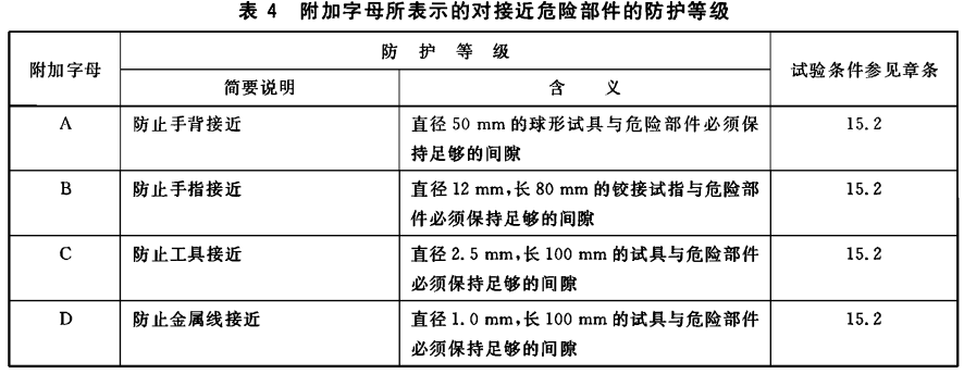 各類產品引用外殼防護等級的程度和方式,以及采用何種外殼,留待產品標準決定,對具體的防護等級所采用的試驗應符合本標準的規定,必要時,在有相產品標準中可增加補充要求??稍谟嘘P產品標準中作具體規定的細則見附錄B。