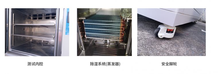 蒸汽式加濕器+自動補(bǔ)水系統(tǒng)+防干燒保護(hù),速度快,控精度高。*.除濕采用機(jī)械制冷除濕,利用制冷系統(tǒng)將空氣冷卻到露點溫度以下,使大于飽和含濕量的水汽凝結(jié)析出,這樣就降低了箱內(nèi)濕度。